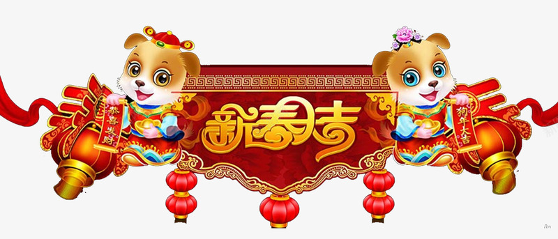 狗年新春佳节装饰卡通插画