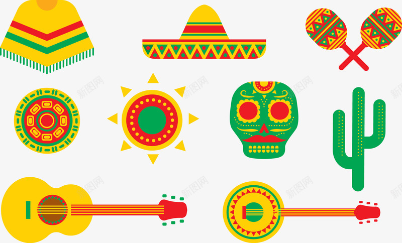 创意插画彩绘位图图形蒙古特色物矢量图