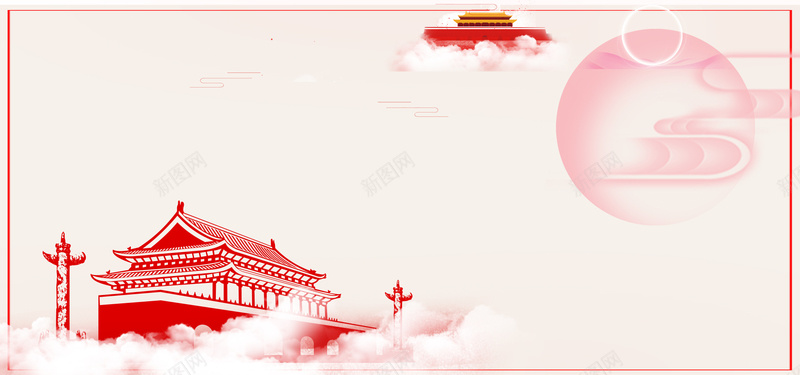 红色喜庆天安门中秋国庆月亮banner