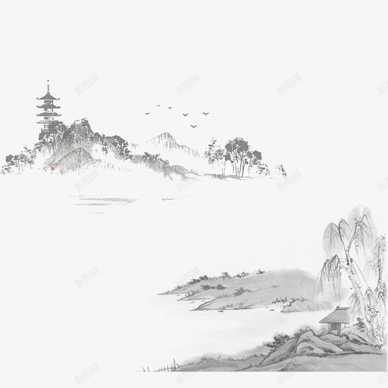 清明节水墨风背景元素