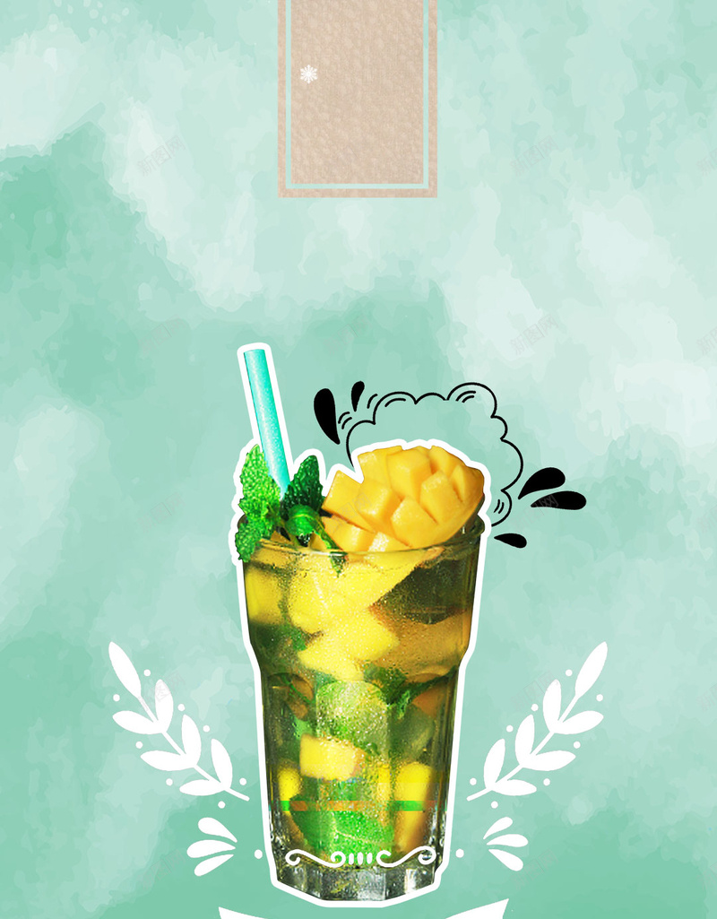 清凉夏天芒果冰绿色背景图