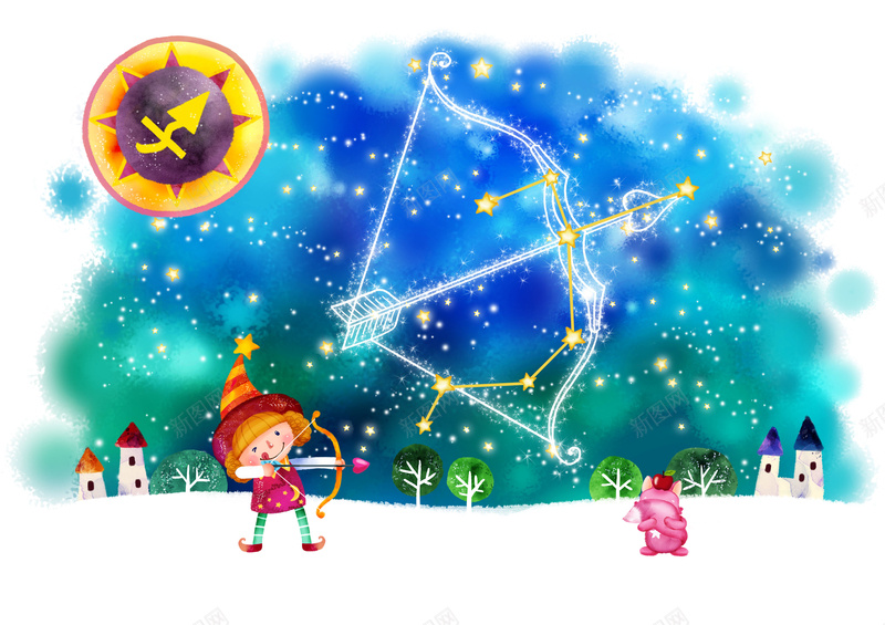 十二星座射手座卡通图案蓝色背景素材