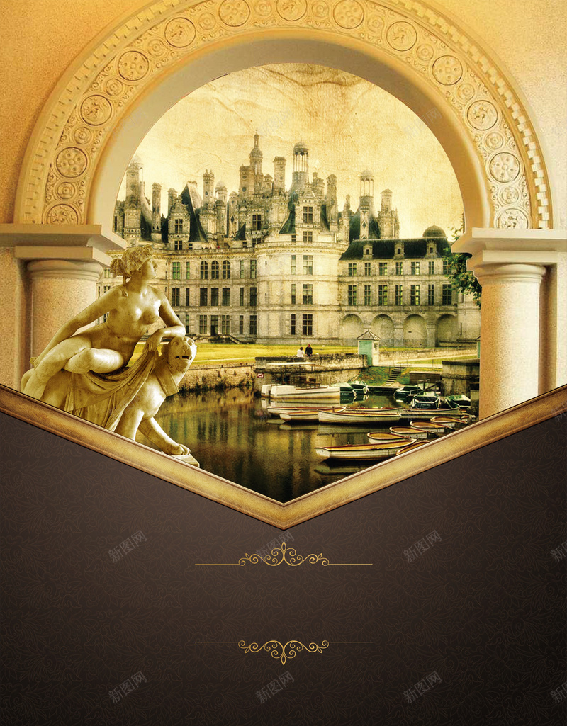 大气金色欧式建筑欧式地产宣传海报背景ps